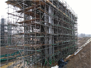 Stability is obtained by anchoring the soldiers to concrete blocks with sufficient weight to resist all horizontal and any vertical forces. It is suitable for building renovation, demolition, propping, needling and can also provide the support platform for site cabins above ground level.
